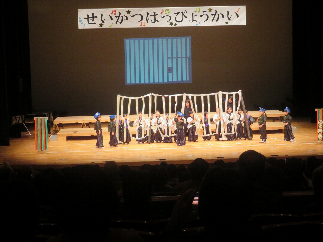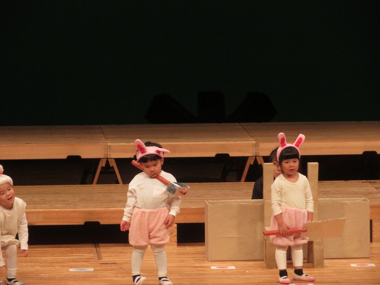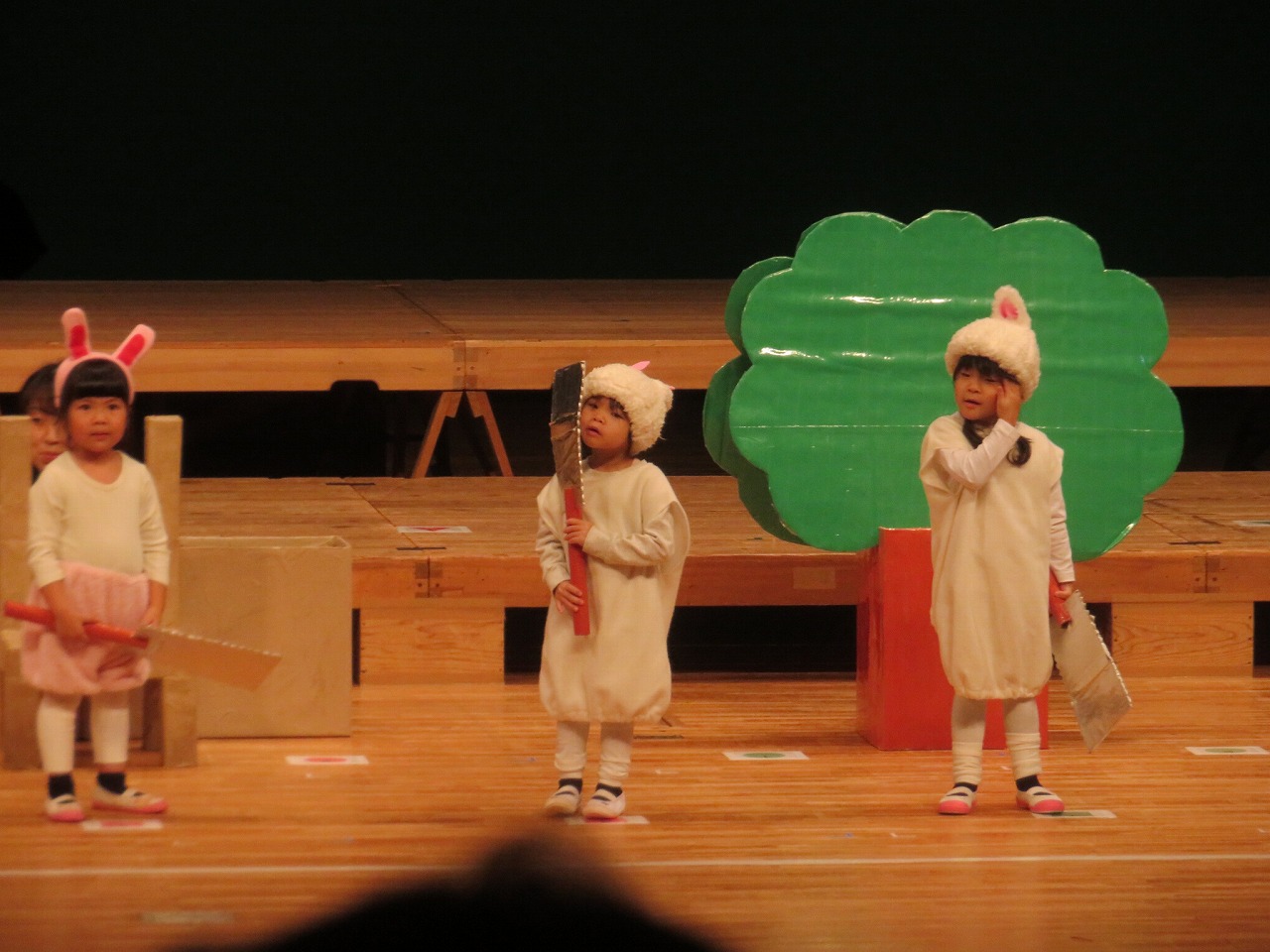 子どもたちは、毎日の生活や遊びの中で育まれた姿を、劇や歌、合奏を通してのびのびと表現しました。